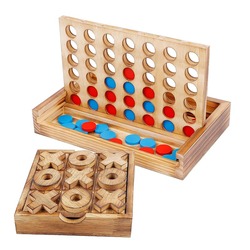 הבוהן עץ עץ עץ כפרי & 4 בתוך השורה סט משחק לוח משולב שורה, משחקי שולחן אסטרטגיה משפחתית עבור תפאורה פאב ביתי