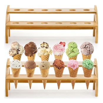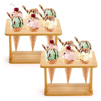 Soporte de cono de helado de bambú Soporte de exhibición de cono de gofre de 2 capas Rollo de mano duradero Soporte Temaki de palomitas de maíz para sushi