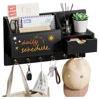 Llavero de madera Soporte de pared para llaves y soporte de correo con cajón Organizador de correo